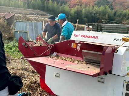 北神みその原材料となる白大豆の脱穀作業に取組ました。その後、JAによる検査を受け出荷となります。